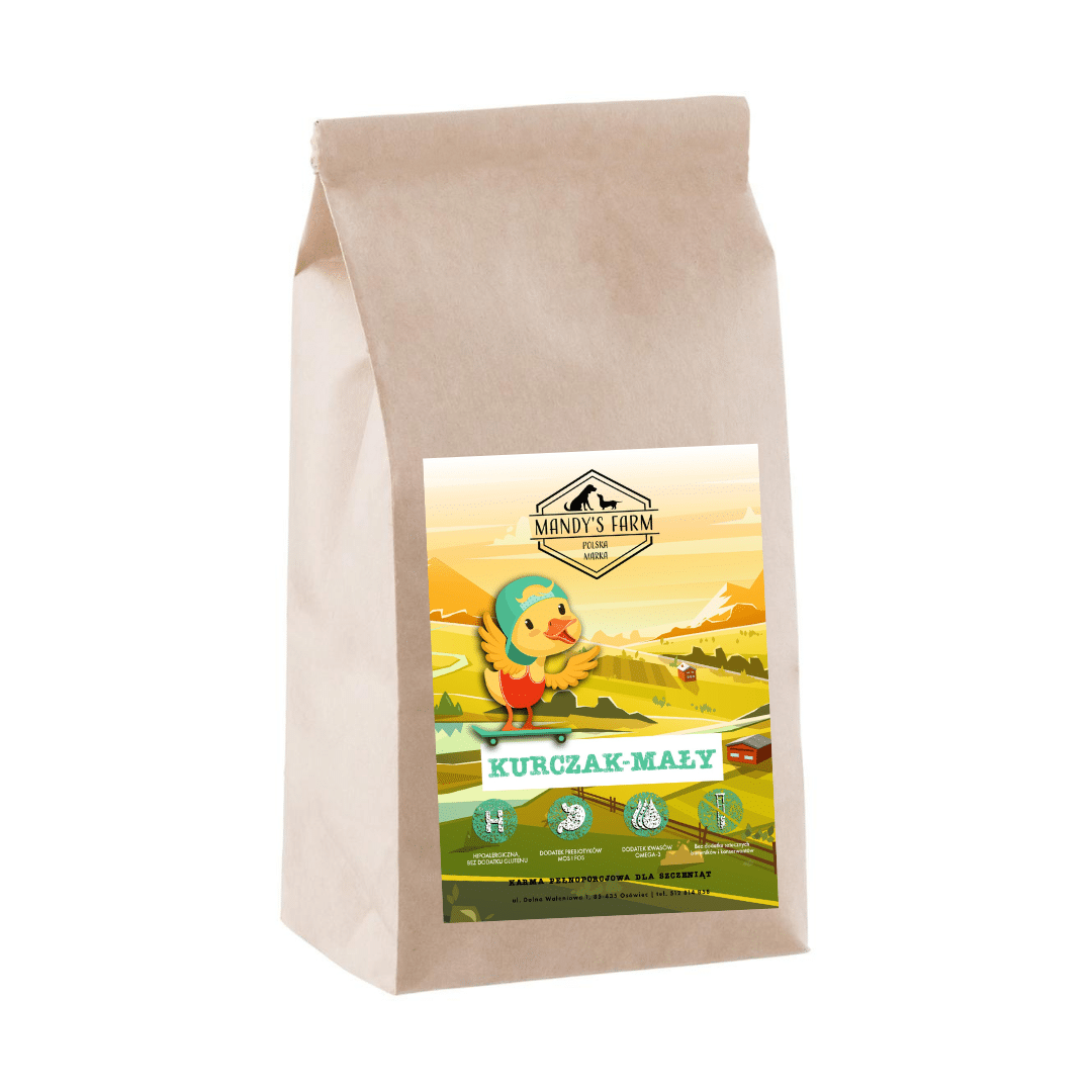 Nasza karma sucha "Kurczak Mały" od Mandy’s Farm to idealny wybór dla Twojego szczeniaka.